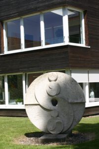 Die Monade, Skulptur im Praxisgarten; Symbol für Energien in Harmonie