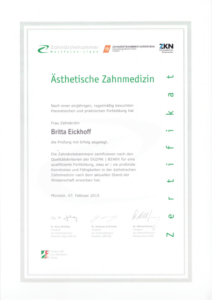 In unserer Praxis hat sich Frau Zahnärztin Britta Eickhoff über lange Jahre (u. a. Absolventin des Curriculums Ästhetische Zahnmedizin) auf das Gebiet der Ästhetischen Zahnmedizin in unserer Zahnarztpraxis in Bielefeld spezialisiert. Einfache Maßnahmen, wie eine professionelle Zahnreinigung oder das auf dieser Seite erklärte Zahnbleaching , schaffen bereits einen freundlicheren, frischen Eindruck.