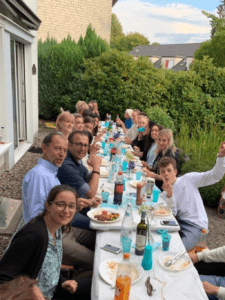 Ein üppiges selbstgemachtes Buffet war aufgebaut, für Essen und Trinken hervorragend gesorgt. So wurde bis in die Dunkelheit gefeiert und geklönt. Und angestoßen wurde auch – auf die letzten, sehr erfolgreichen „30“ und viele weitere Feieranlässe !!!