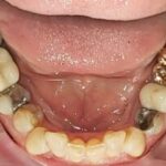 Patientenfall, zahnloser Unterkiefer. Komplett metallfreie Lösung. Der Zirkonium-Steg auf 4 Implantaten garantiert einen absolut festen Sitz, Sicherheit und Kaukomfort.