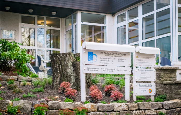 In Ruhe und entspannter Atmosphäre bei Ihrem Zahnarzt. Dafür haben wir unsere Praxis warm und wohnlich eingerichtet. Künstlerische Akzente bestimmen das Erscheinungsbild. Das Praxisgebäude befindet sich in einem großen, idyllischen Garten, im Herzen von Schildesche , dem malerischen Vorort von Bielefeld. Von fast allen Behandlungszimmern haben Sie einen Blick „ins Grüne“.